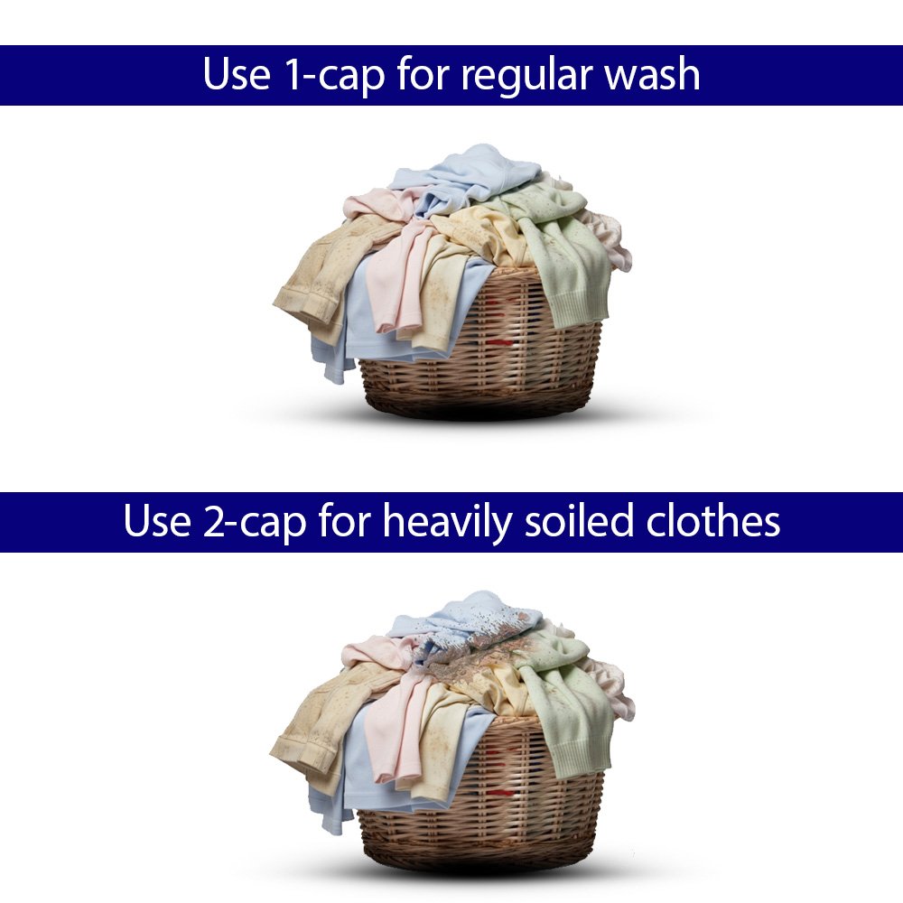 Step 1: Use 1 capful for regular wash and 2 capfuls for heavily soiled clothes.